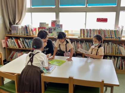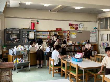 月曜日のお昼休みに、ブックサポートさんが図書館開放をされたときの様子です。この日もたくさんの子どもたちが来ていました。