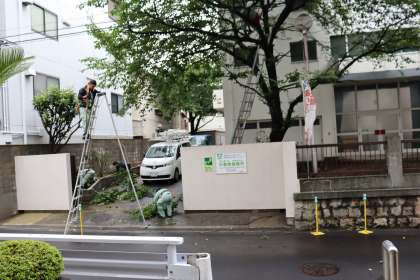 桜の木の枝が伸びて、電線にかかっていて危なかったため、枝を切っていただきました。カラスの巣もできていたのですが、一緒に撤去していただきました。