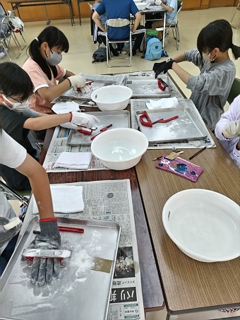 もくもくと削る子どもたちです。