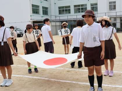 開会式では、国旗や市旗、校旗に続き、応援団が入場します。