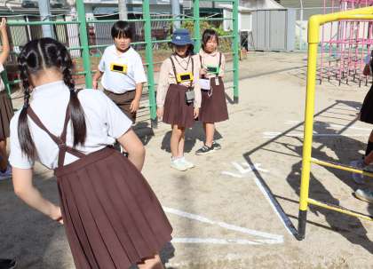 次の観察時間には,先ほど見ていた方向に太陽が見当たらず「どこにいった?」「あんなところまで移動してる」などとつぶやいていました。かげを見る時も「さっきとあまり変わらないね」「めっちゃ動いているよ」と友だち同士で話していました。