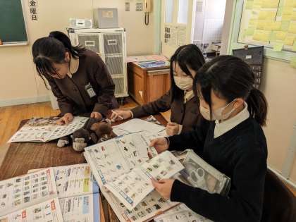 12月に入り、6年生の外国語学習ではゲーム性を取り入れられた復習問題に取り組んでいます。何を問われているのか、その答えにはどのような文型や言葉で答えなければならないのか考えなければなりません。グループ一丸となって教科書や資料集を開きながら答えを導いています。どの子も答えを導くべく前向きに取り組む姿がありました。