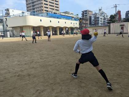 キャッチボールも相手の様子を見ながら上手に行っています。時に、試合でも使えるようにとフライやゴロを取る練習も自分たちで声を掛け合いながら行っています。