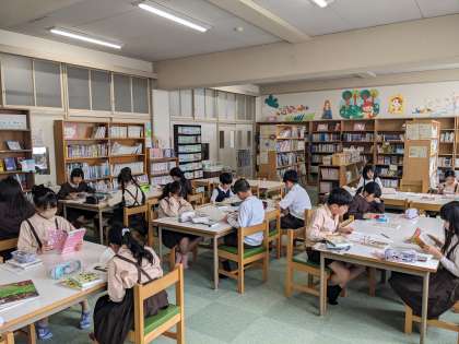 0から9まである本の分類について学習した後、分類の中から1冊お気に入りの本を選んで「自分のミニ図書館」を作ります。普段の読書ではあまり手にしない分類もあり、図書の時間を使ってゆっくりと選んだり読んだりしています。どんな本を選んでミニ図書館が作られていくのか楽しみです。