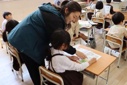 四季を確認した後に、春に咲くお花で知っているお花を紹介したり、教科書に載っているお花の中から見たことのあるお花を紹介したりしました。