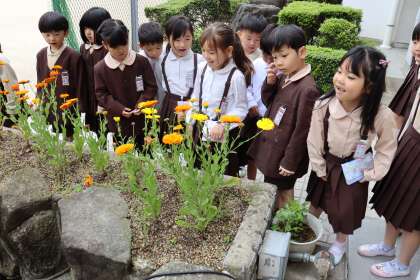学習の最後には、校内に咲いているお花を見つけに行きました。