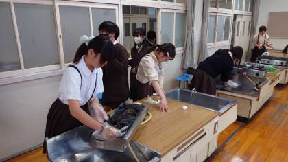 今年度も気持ちよく家庭科室が使えるように,コンロ周りや床,シンクなど,そうじ方法や用具を工夫してそうじをしました。コンロ周りの汚れはなかなか落ちず,子どもたちも苦戦していましたが,見違えるほどきれいな家庭科室になりました。