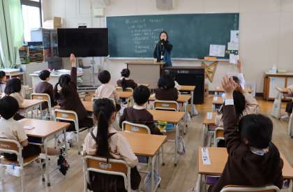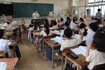 全校朝会のあと、各学級での取り組みの様子を紹介します。