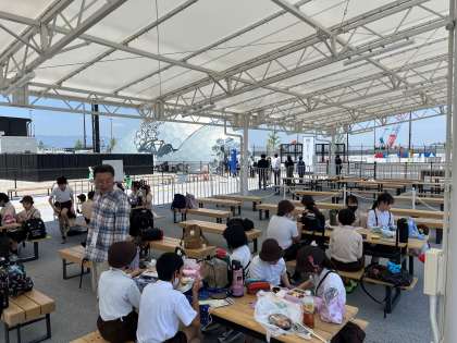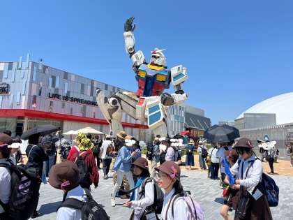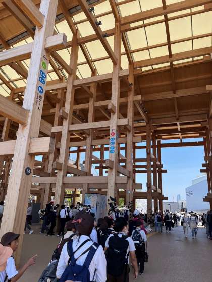 お弁当のを食べた後、大屋根リングに登って、ガンダムを見に行きました。