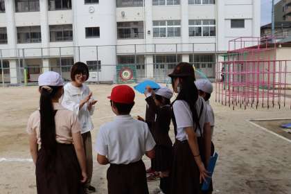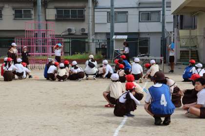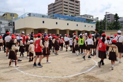 集会委員にルール説明をしてもらった後、たてわり班で協力してゲームをしました。