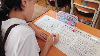 今日は、栄養教諭の先生に来ていただき、お弁当の献立を考えることを通して、「栄養のバランスが良い食事」とは何かを教えていただきました。どんなおかずを入れようか、お弁当の名前はどうしようかなど、一人一人しっかりと考えることができました。