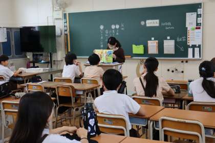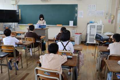 今朝は、担当の学級に自己紹介をしに行きました。そして、食べ物に関する絵本の読み聞かせをしました。