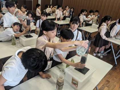 説明を聞き、動画や実験を通して淀川の水がどのようにして安全できれいな水になっていくのか学ぶことができました。