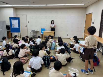 2年生が、北図書館に見学へ行きました。みんなで考えてきた質問一つひとつに、図書館の方が答えて下さいました。その答えに、「へぇ〜!」と思わず声が出る子どもたちでした。図書館内では、分類ごとに本が並んでいることや、DVDを見る場所などを説明していただきました。