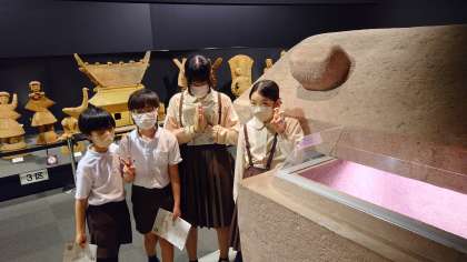 校外学習で、高槻市にある今城塚古墳と古代歴史館に行ってきました。歴史館では、古墳の作りや歴史について学びました。たくさんの種類の埴輪を見ることもできました。子どもたちがイメージしていたよりも種類も多く、サイズも大きかったようです。