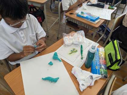 学校の中のあんな場所やこんなとき…。がんばるみんなを応援してくれる、そんなマスコットを紙粘土を使って作ります。学校中のみんなが楽しい気分になるマスコットを子どもたちなりに考え作り始めました。どのような作品が出来上がるのか、今から楽しみです!