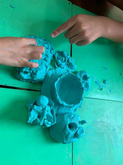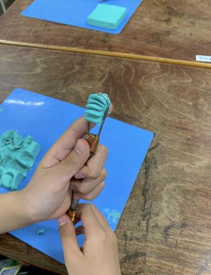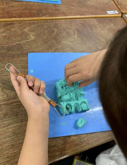 3年生は図画工作科で「けずって つけて わたしたちの形」の学習に取り組みました。粘土のかたまりを削ったり付けたりして、それぞれが楽しみながら形をつくることができました。子どもたちは、かき出しべらを上手に使って粘土を削っていました。最後は、グループの友だちの作品と合体させて大きな作品に仕上げました。
