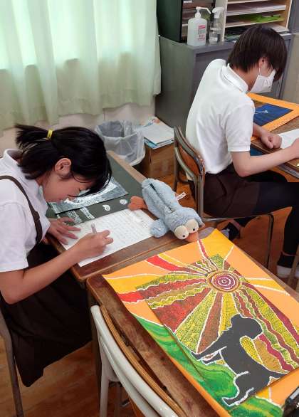 今日は作品の鑑賞会です。友だちの良いところをたくさん見つけることができたようです。