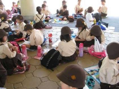 本校では、春の遠足は、低・中・高学年別に、2学年合同で実施しています。上級生の手本となる姿を見て下級生がそれに憧れを持ち、自分もそのようになりたいという気持ちを育てたいと考えています。