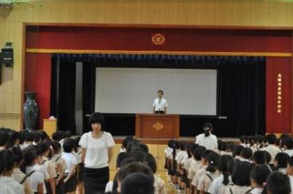 校長先生の話のあと、3年生児童が1学期に学習した「天神祭」についての発表をしました。その後、生活指導や健康教育の係の先生から夏休みの過ごし方についての話がありました。また、プール開放や図書館開放についての約束ごとを確認しました。
