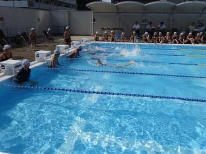25m自由形・25m平泳ぎ・50m自由形・50m平泳ぎに分かれて記録を取った後、学校別対抗で100m(25m×4)リレーを行い、大いに盛り上がりました。