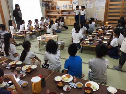 朝の集いでラジオ体操や班対抗リレーをして目を覚ました後、朝食です。