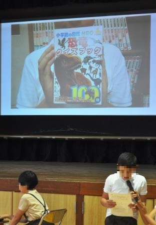 今日の児童集会は、図書・新聞委員会の発表がありました。