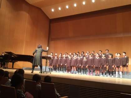 11/15(火)、クレオ大阪中央を会場に開かれた大阪市小学校音楽交流会に、本校の4年生が参加しました。本校は、大阪市内の小学校9校が参加した午後の部に出場しました。本校とあともう1校が4年生の参加で、他校は5・6年生の出場です。そのような中でも、本校の4年生は気おくれすることなく、十分に自分たちの持ち味を発揮していました。合唱したのは、「ふるさと」と「いのちの歌」。先日の学習発表会と同じく、澄んだ歌声を聞かせてくれました。