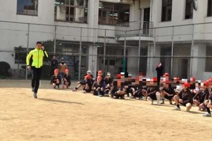 講演の後、運動場で実技指導をしていただきました。走り方のコツを教えていただき、児童はいつも以上にはりきって運動に取り組んでいました。
