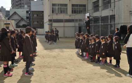 4/13(木)、入学したばかりの1年生と2年生以上の上級生とが顔合わせをする対面式を実施しました。クラスごとに並んだ1年生が在校生の前に整列し、式が始まります。6年生の代表児童からは、歓迎の言葉がありました。1年生も、「よろしくお願いします」と大きな声で言うことができました。
