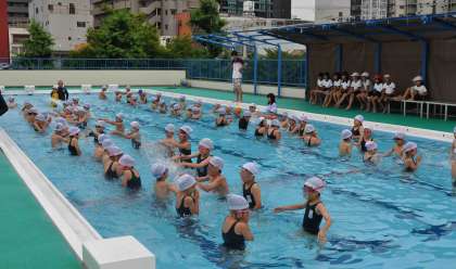 6月22日(木)平成29年度の水泳学習がスタートしました。連日の晴天がうそのように梅雨空が戻ってきたこの日、水に入ると肌寒さもありましたが、3年生・4年生・5年生がプールに入りました。この日を待っていた子どもたち、久しぶりの水の感触に歓声があがりました。水泳は他の運動とは違って呼吸が制限される運動です。そのため授業では、まず水に慣れて楽に呼吸ができ、水の中で自分の体を自由にコントロールできるようになることを目標としています。プール水泳は夏休みのプール開放をはさんで9月8日(金)まで実施します。安全に十分留意しながら学習を進めてまいりますので、ご家庭でも登校前の健康観察をよろしくお願いします。