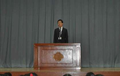 1月9日(火)、3学期の始業式を行いました。校長先生のお話の後、4年生の代表児童が、全校児童の前で3学期の抱負を語りました。