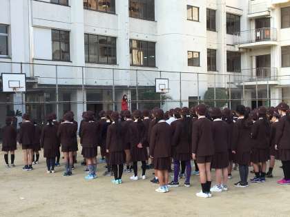 毎週月曜日の朝に行っている児童朝会も、3月12日に行ったものが本年度最終です。1〜6年生が運動場に揃うのもこれが最後となります。