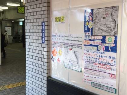 現在、地下鉄天神橋筋六丁目駅のコンコース(くらしの今昔館前)〔写真上〕やJR天満駅みどりの窓口北側〔写真下〕、天神橋筋商店街内などに掲示されています。ぜひご覧いただき、「天満の魅力」を感じてください。