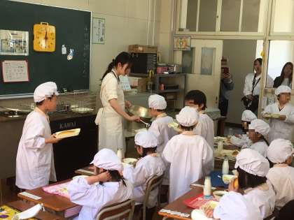 1年生にとって初めての参観は、給食参観でした。給食当番が給食を配膳するところや、入学してから教えてもらった給食を食べる時のルールを守りながら、おいしく食べている姿を見ていただきました。