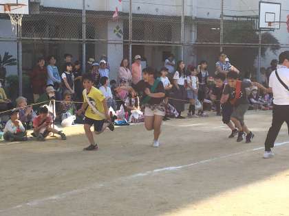 初夏を思わせる陽気の中、地域の老若男女がパン食い競走や玉入れ・綱引きなど、運動会を楽しみました。フィナーレを飾るのは、町別対抗たすきリレー。歓声の中、優勝したのは吉山町でした。