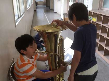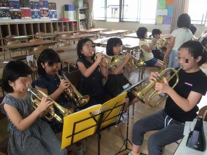 現在は、6月2日(土)に開催される本校の運動会で演奏する曲を練習しています。みんな応援団同様、運動会を盛り立てるためにがんばっています。4月に入部した新入部員も、コルネットが吹けるようになりました。