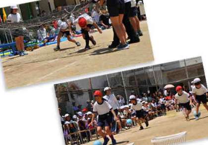 3年生からは、リレーが出場種目に加わります。初めてのバトンパスでしたが、上手にパスすることができました。ダンス「NICO NICO ソーラン」、綱引き「力を合わせて〜オーエスオーエス〜」、個人走「跳んでくぐって1・2・3!」、リレー「一致団結 3年生」に出場しました。