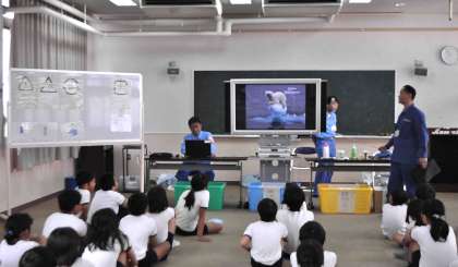 6月8日(金)、大阪市北部環境事業センターの出前授業が行われました。4年生は社会科で「すみよいくらしとごみ」の学習をしています。私たちのくらしや環境を守るため、ごみはどのように処理されたり、資源として再利用されたりしているのか、今日は実際にその仕事に携わっていらっしゃる方々に来ていただいてお話を聞きました。