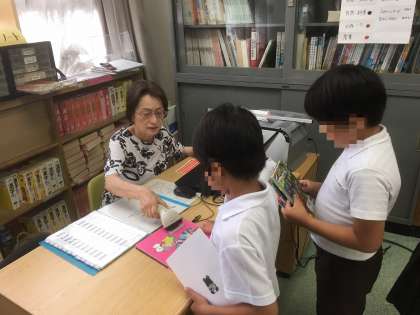 本校には、毎週月曜日、学校図書館補助員さんが来てくださいます。これは、大阪市立図書館の「学校図書館活用推進事業」の一環です。補助員さんは、図書館開放や図書整備等を手伝ってくださっています。