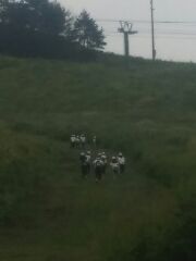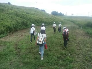 ただいま神鍋山に登っています。班ごとにオリエンテーリングをしながらの登山です。登山道のあちらこちらに虫やカエルなどがいて、歓声(または悲鳴)があがっています。