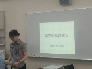 試食後、中津小学校の栄養教諭 竹内真実子先生に学校給食についてご講義いただき、有意義な時間となりました。