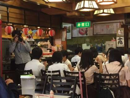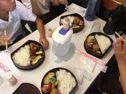 朝が早かったので、お腹もぺこぺこです。修学旅行最初の、みんなでいただく昼食です。