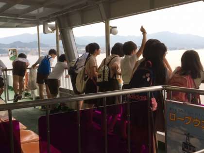 楽しかった宮島での活動を終え、再びフェリーに乗りました。今から、今夜の宿舎に向かいます。
