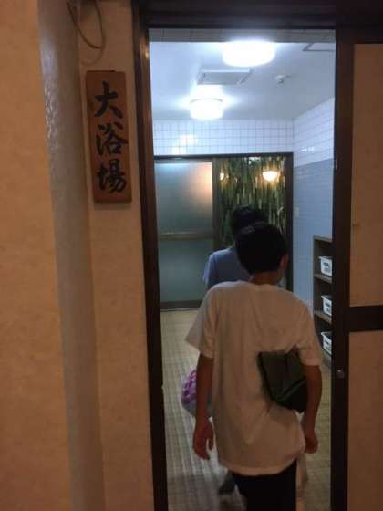 友達と一緒に大きなお風呂に入るのも、修学旅行の楽しみ。今日一日の汗を流します。