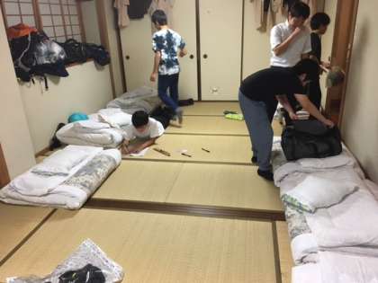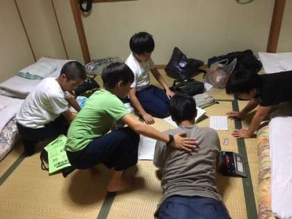 風呂には順番に入るので、待っている子ども達は、その間に日記やチェック表を記入します。また、寄せ書きの作成もします。