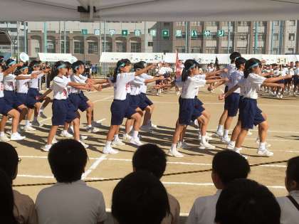 9月28日(金)、天満中学校の体育大会が行われ、朝から6年生が参観させていただきました。