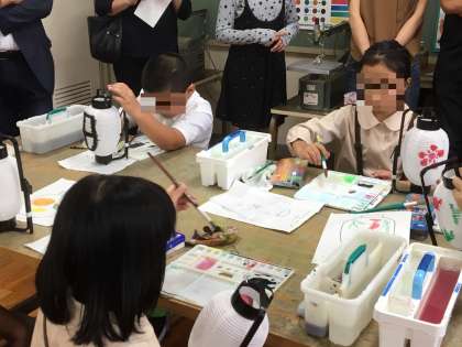 3年生は、調べ学習と並行して、天神祭とゆかりが深い地元の伝統工芸である提灯についても学習しています。今回は、以前にお話を聞かせていただいた提灯屋さんを再度ゲストティーチャーに迎え、ミニ提灯を作ってみました。