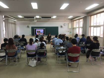 本校教育の理念を説明した後、学校生活や年間行事の概要等について説明しました。