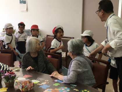 最後に、施設職員のみなさんにインタビューをしました。「仕事をしていて楽しいこと、大変なことは何ですか」という子どもの質問に、「大変なこともあるけれど、そのことが楽しいです。人間は誰もが必ず年を取り、おじいちゃん、おばあちゃんになります。誰かの世話にならなければならなくなります。自分もいつかは誰かに世話になるのだから、今、自分ができることでお世話しています」と答えられたことが印象的でした。